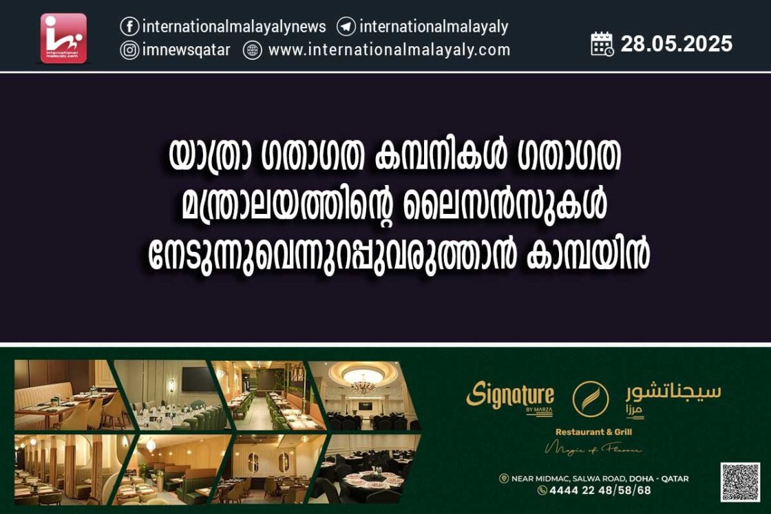 ദോഹ. രാജ്യത്തെ യാത്രാ ഗതാഗത കമ്പനികള് ഗതാഗത മന്ത്രാലയത്തിന്റെ ലൈസന്സുകള് നേടുന്നുവെന്നുറപ്പുവരുത്താന് കാമ്പയിന് ആഭ്യന്തര മന്ത്രാലയത്തിലെ പ്രസക്തമായ വകുപ്പുകളുമായി സഹകരിച്ച് ഗതാഗത മന്ത്രാലയം കാമ്പയില് ആരംഭിച്ചു.