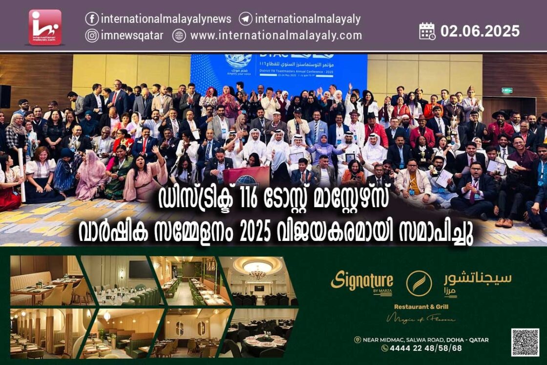 ഡിസ്ട്രിക്ട് 116 ടോസ്റ്റ് മാസ്റ്റേഴ്സ് വാര്ഷിക സമ്മേളനം 2025 വിജയകരമായി സമാപിച്ചു