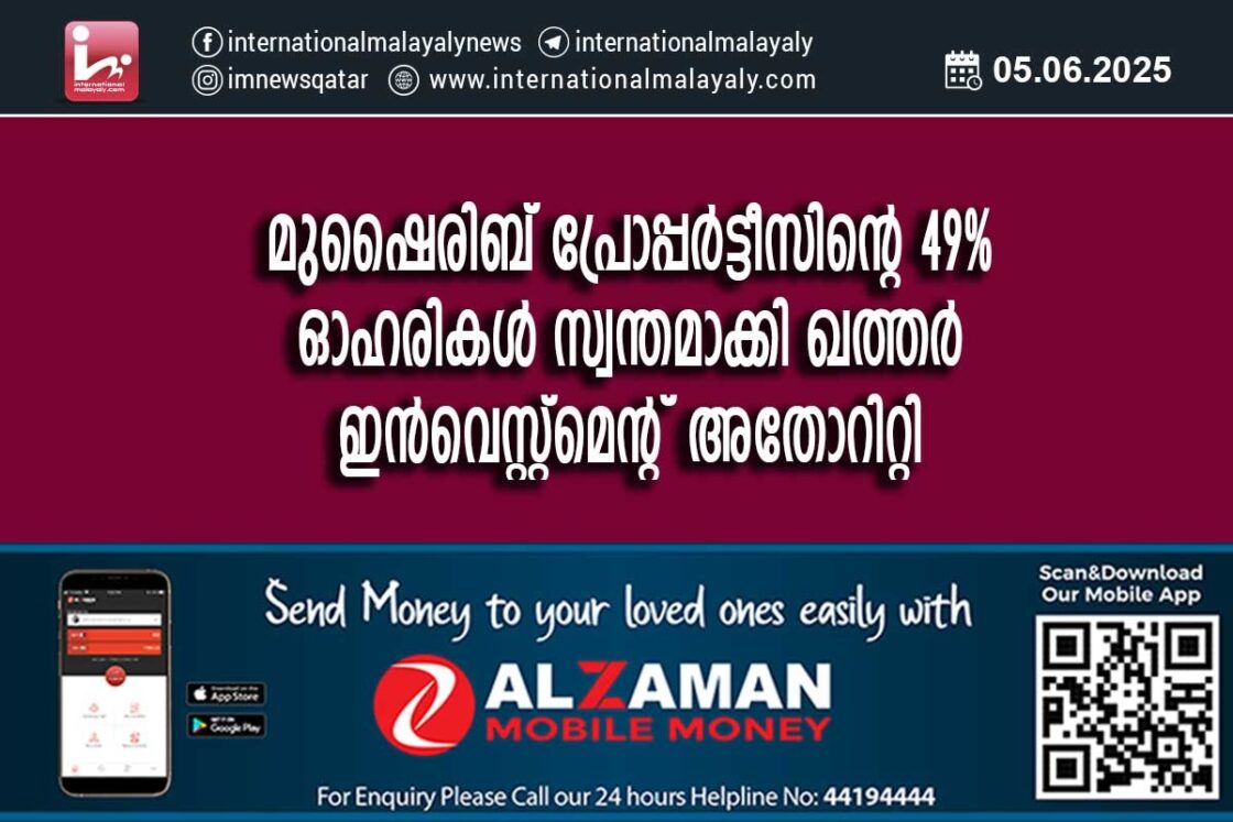 മുഷൈരിബ് പ്രോപ്പര്ട്ടീസിന്റെ 49% ഓഹരികള് സ്വന്തമാക്കി ഖത്തര് ഇന്വെസ്റ്റ്മെന്റ് അതോറിറ്റി
