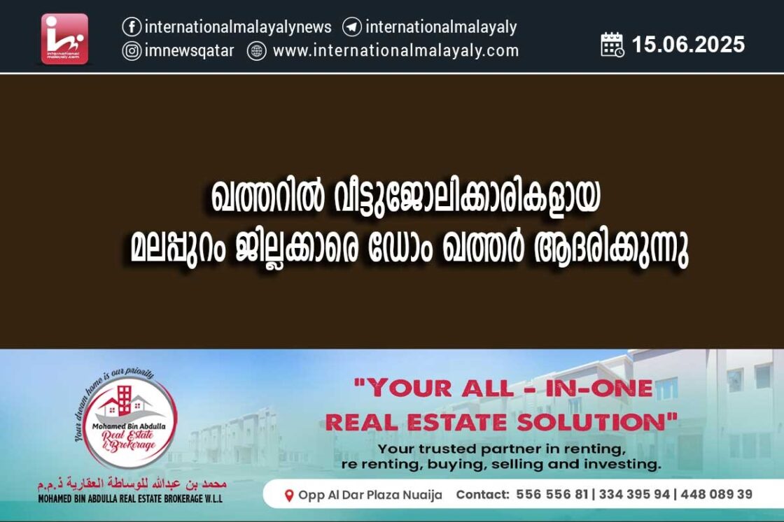ഖത്തറില് വീട്ടുജോലിക്കാരികളായ മലപ്പുറം ജില്ലക്കാരെ ഡോം ഖത്തര് ആദരിക്കുന്നു