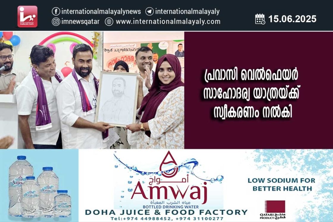 പ്രവാസി വെല്ഫെയര് സാഹോദര്യ യാത്രയ്ക്ക് സ്വീകരണം നല്കി