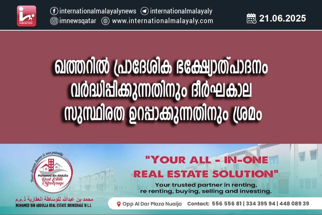 ഖത്തറില് പ്രാദേശിക ഭക്ഷ്യോത്പാദനം വര്ദ്ധിപ്പിക്കുന്നതിനും ദീര്ഘകാല സുസ്ഥിരത ഉറപ്പാക്കുന്നതിനും ശ്രമം