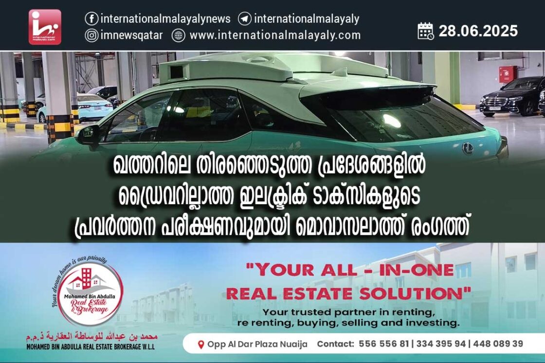 ഖത്തറിലെ തിരഞ്ഞെടുത്ത പ്രദേശങ്ങളില് ഡ്രൈവറില്ലാത്ത ഇലക്ട്രിക് ടാക്സികളുടെ പ്രവര്ത്തന പരീക്ഷണവുമായി മൊവാസലാത്ത് രംഗത്ത്