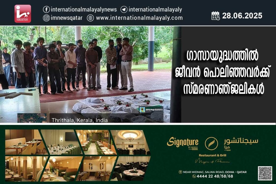 ഗാസായുദ്ധത്തില് ജീവന് പൊലിഞ്ഞവര്ക്ക് സ്മരണാഞ്ജലികള്