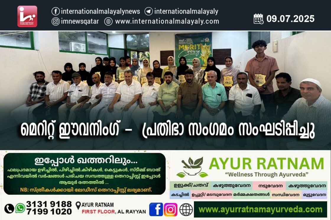 ദോഹ: ഖത്തര് കെഎംസിസി മൊഗ്രാല് പുത്തൂര് പഞ്ചായത്ത് കമ്മിറ്റി, എം.എസ്.എഫ്. കമ്മിറ്റിയുടെ സഹകരണത്തോടെ മെറിറ്റ് ഈവനിംഗ് പ്രതിഭാ സംഗമം സംഘടിപ്പിച്ചു. കാസറഗോഡ് എം.എല്.എ എന്.എ. നെല്ലിക്കുന്ന് പരിപാടി ഔപചാരികമായി ഉദ്ഘാടനം ചെയ്തു.