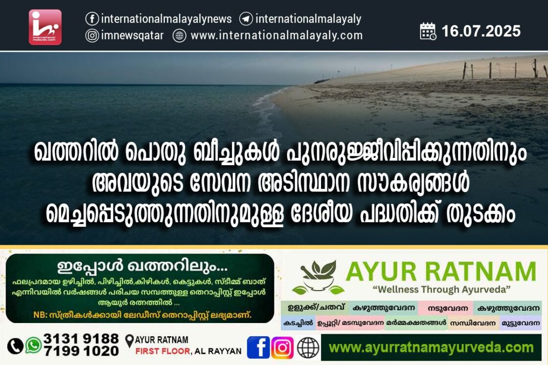 ഖത്തറില്‍ പൊതു ബീച്ചുകള്‍ പുനരുജ്ജീവിപ്പിക്കുന്നതിനും അവയുടെ സേവന അടിസ്ഥാന സൗകര്യങ്ങള്‍ മെച്ചപ്പെടുത്തുന്നതിനുമുള്ള ദേശീയ പദ്ധതിക്ക് തുടക്കം