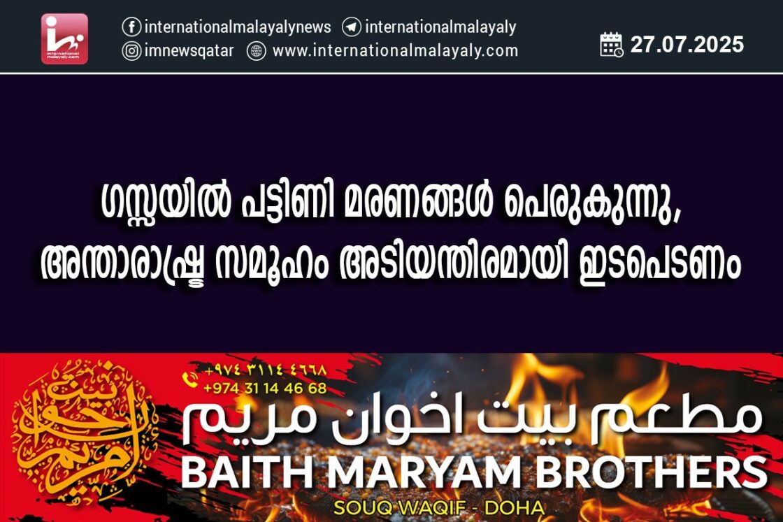 ദോഹ. ഇസ്രായേലിന്റെ നിരന്തരമായ പീഡനങ്ങള്ക്ക് വിധേയമാകുന്ന ഗസ്സയില് പട്ടിണി മരണങ്ങള് പെരുകുന്ന സാഹചര്യത്തില്