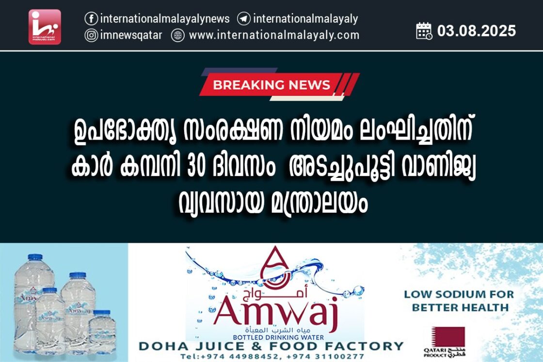 ഉപഭോക്തൃ സംരക്ഷണ നിയമം ലംഘിച്ചതിന് കാര് കമ്പനി 30 ദിവസം അടച്ചുപൂട്ടി വാണിജ്യ വ്യവസായ മന്ത്രാലയം