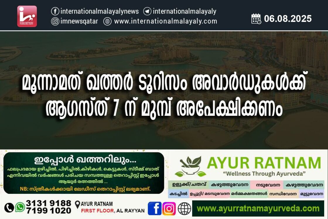 മൂന്നാമത് ഖത്തര് ടൂറിസം അവാര്ഡുകള്ക്ക് ആഗസ്ത് 7 ന് മുമ്പ് അപേക്ഷിക്കണം