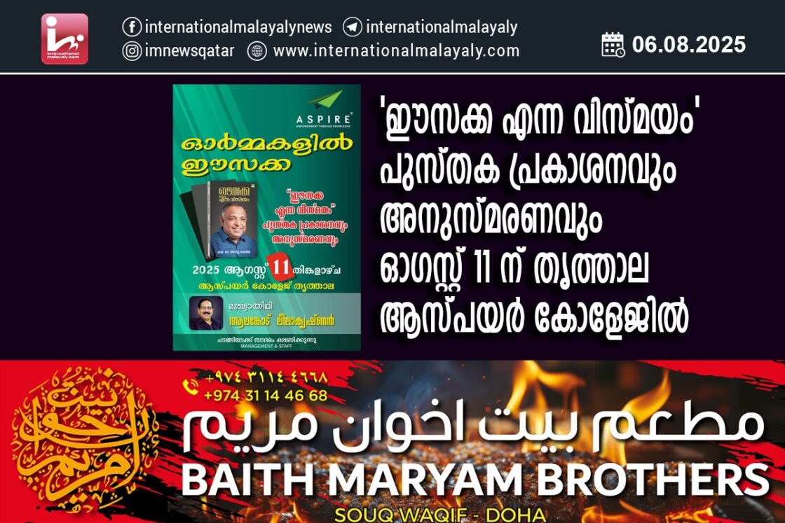 ‘ഈസക്ക എന്ന വിസ്മയം’ പുസ്തക പ്രകാശനവും അനുസ്മരണവും ഓഗസ്റ്റ് 11 ന് തൃത്താല ആസ്പയര് കോളേജില്