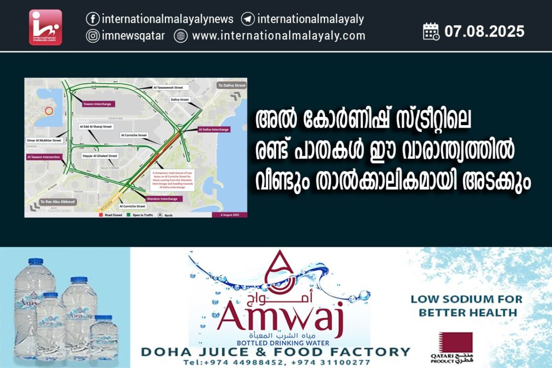 അല് കോര്ണിഷ് സ്ട്രീറ്റിലെ രണ്ട് പാതകള് ഈ വാരാന്ത്യത്തില് വീണ്ടും താല്ക്കാലികമായി അടക്കും