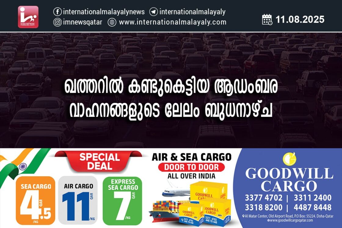 ഖത്തറില് കണ്ടുകെട്ടിയ ആഡംബര വാഹനങ്ങളുടെ ലേലം ബുധനാഴ്ച