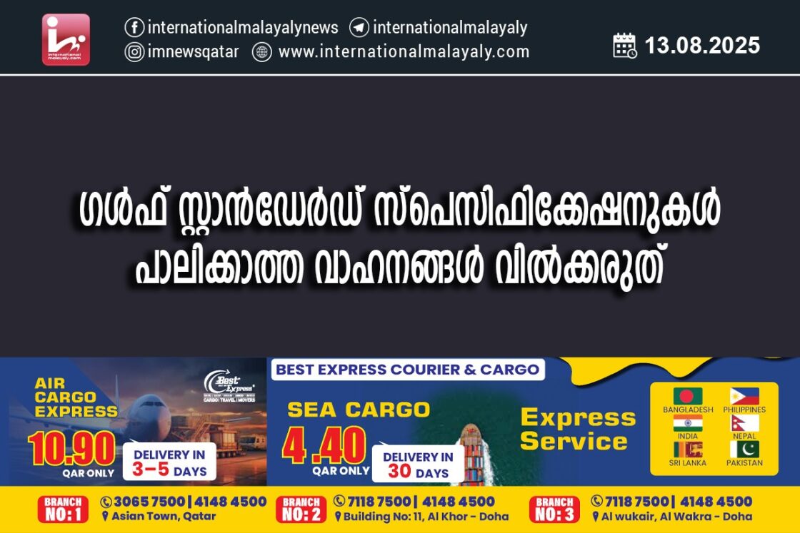ഗള്ഫ് സ്റ്റാന്ഡേര്ഡ് സ്പെസിഫിക്കേഷനുകള് പാലിക്കാത്ത വാഹനങ്ങള് വില്ക്കരുത്