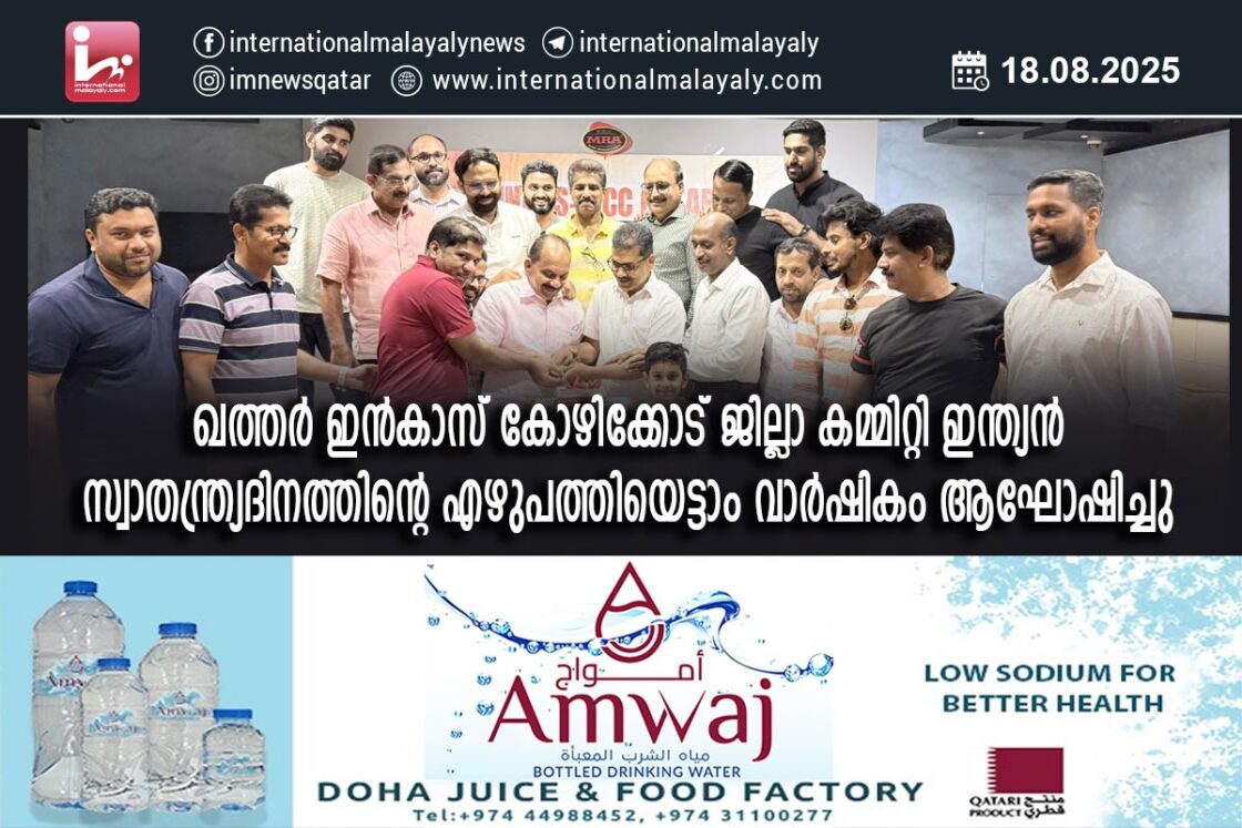 ഖത്തര് ഇന്കാസ് കോഴിക്കോട് ജില്ലാ കമ്മിറ്റി ഇന്ത്യന് സ്വാതന്ത്ര്യദിനത്തിന്റെ എഴുപത്തിയെട്ടാം വാര്ഷികം ആഘോഷിച്ചു