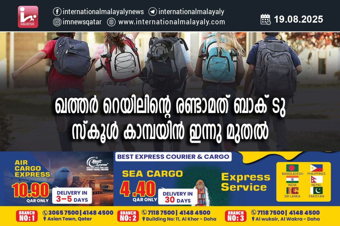 ദോഹ: ഖത്തര് റെയില്വേസ് കമ്പനി (ഖത്തര് റെയില്), ഖത്തറിലെ ഒരു കൂട്ടം സ്കൂള് സപ്ലൈസ് ദാതാക്കളുമായി സഹകരിച്ച് സംഘടിപ്പിക്കുന്ന രണ്ടാമത് ബാക് ടു സ്കൂള് കാമ്പയിന് ഇന്നു മുതല് സെപ്റ്റംബര് 2 വരെ ദോഹ മെട്രോയിലെ സ്പോര്ട് സിറ്റി സ്റ്റേഷനില് നടക്കും.