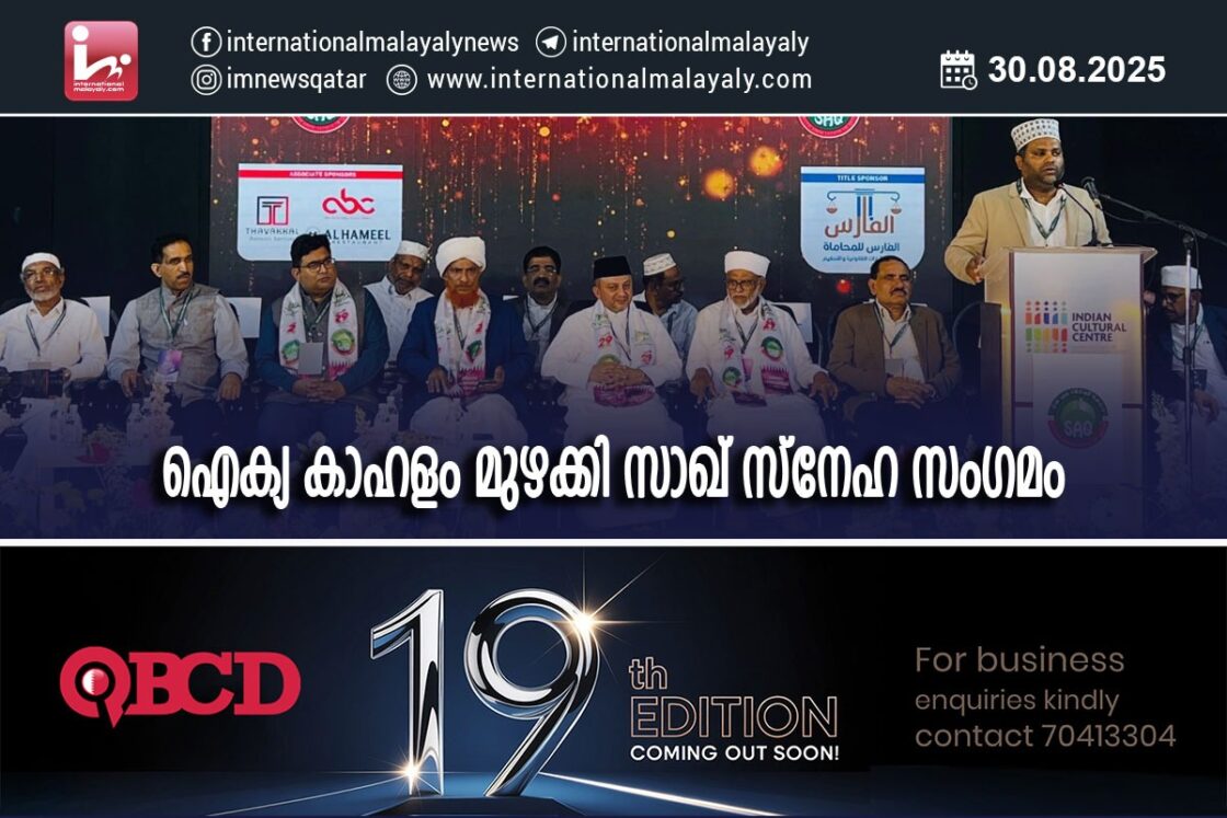 ദോഹ:ഖത്തറിലെ സയ്യിദന്മാരുടെ കൂട്ടായ്മ (സാദാത്തീസ് അസ്സോസിയേശന് ഓഫ് ഖത്തര് -സാഖ് )സംഘടിപ്പിച്ച സ്നേഹ സംഗമം പേമാരി പോലെ പെയ്തിറങ്ങിയ ഇശല് സന്ധ്യയുടെ അകമ്പിയോട് കൂടി ഐക്യത്തിന്റെയും, സ്നേഹത്തിന്റെയും, സാഹോദര്യത്തിന്റെയും സന്ദേശം വിളിച്ചറിയിക്കുന്നതായിരുന്നു