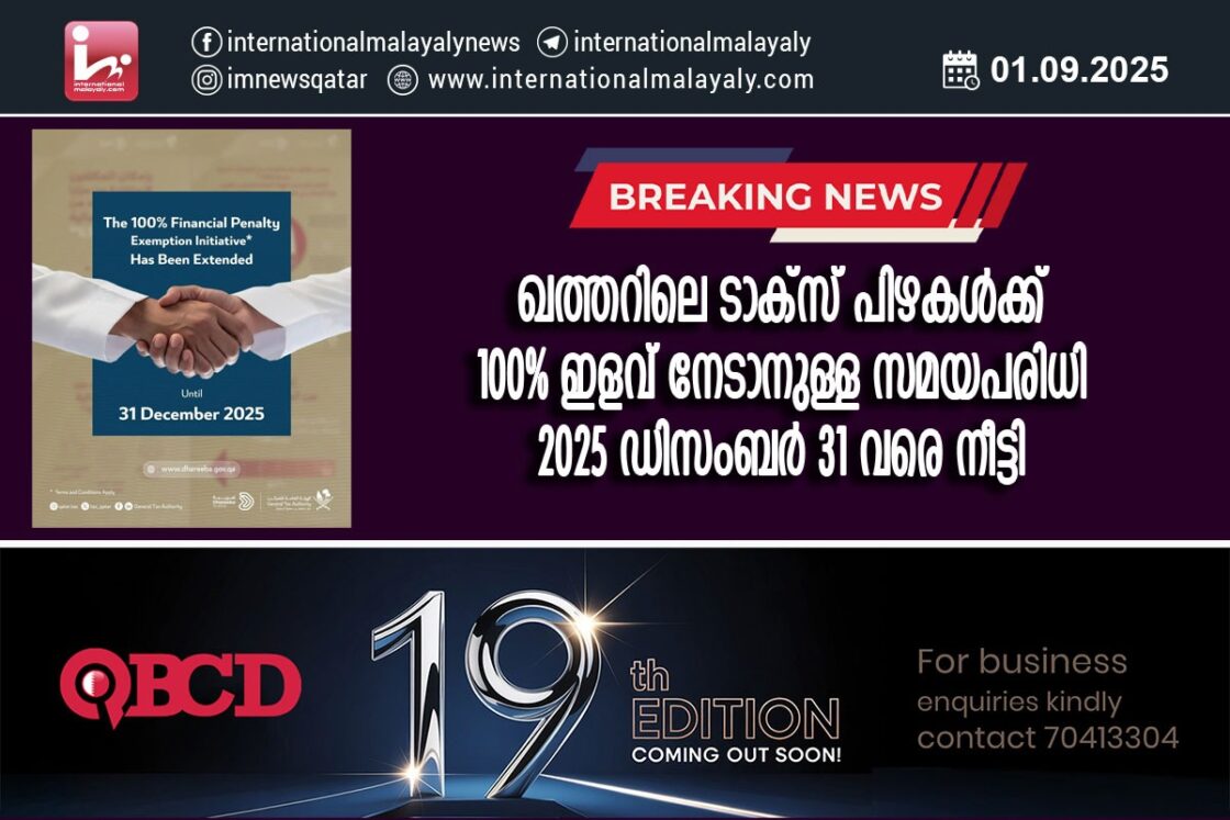 ഖത്തറിലെ ടാക്സ് പിഴകള്ക്ക് 100% ഇളവ് നേടാനുള്ള സമയപരിധി 2025 ഡിസംബര് 31 വരെ നീട്ടി