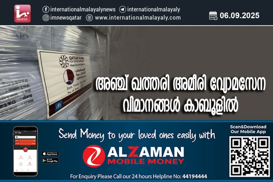 അഞ്ച് ഖത്തരി അമീരി വ്യോമസേന വിമാനങ്ങള് കാബൂളില്