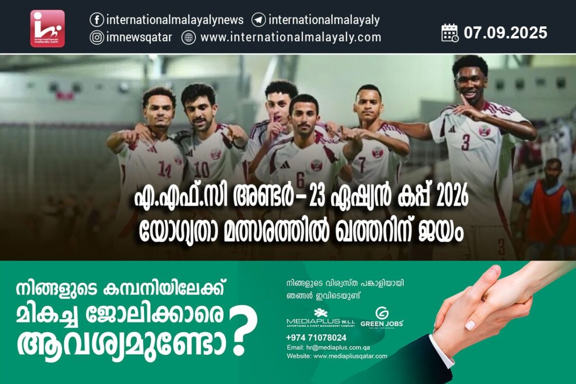 എ.എഫ്.സി അണ്ടര്-23 ഏഷ്യന് കപ്പ് 2026 യോഗ്യതാ മത്സരത്തില് ഖത്തറിന് ജയം