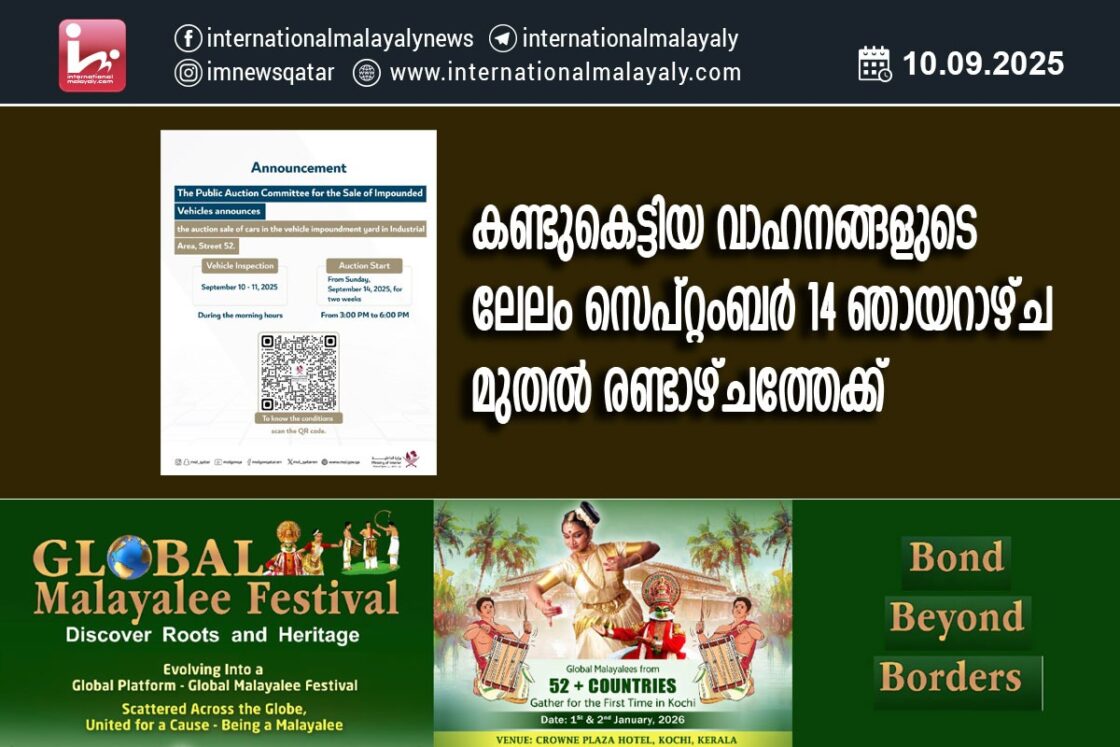 ദോഹ. ഖത്തറില് വിവിധ കാരണങ്ങളാല് കണ്ടുകെട്ടിയ വാഹനങ്ങളുടെ പൊതു ലേലം സെപ്റ്റംബര് 14 ഞായറാഴ്ച മുതല് രണ്ടാഴ്ചത്തേക്ക്. ് ഇന്ഡസ്ട്രിയല് ഏരിയ – സ്ട്രീറ്റ് 52 ലെ ട്രാഫിക് ഇംപൗണ്ട് യാര്ഡിലാണ് കണ്ടുകെട്ടിയ വാഹനങ്ങളുടെ വില്പ്പനയ്ക്കുള്ള ലേലം നടക്കുക.