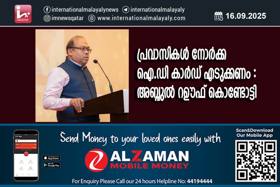 പ്രവാസികള് നോര്ക്ക ഐ.ഡി കാര്ഡ് എടുക്കണം : അബ്ദുല് റഊഫ് കൊണ്ടോട്ടി