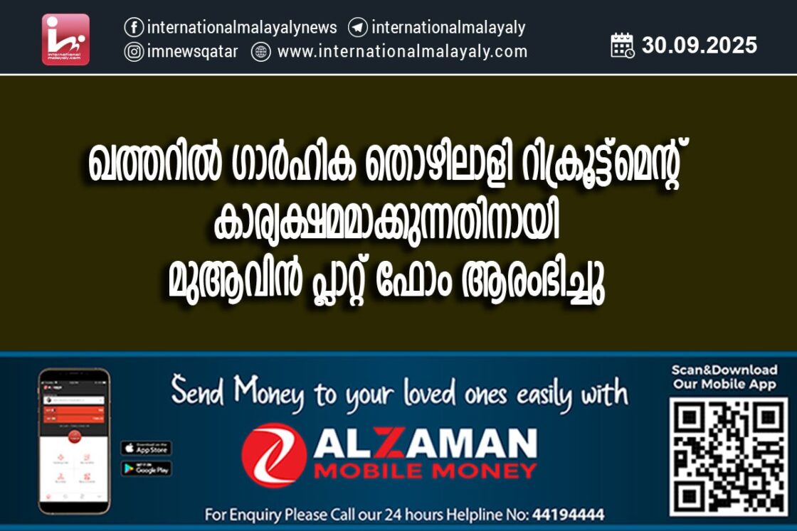 ഖത്തറില് ഗാര്ഹിക തൊഴിലാളി റിക്രൂട്ട്മെന്റ് കാര്യക്ഷമമാക്കുന്നതിനായി മുആവിന് പ്ലാറ്റ് ഫോം ആരംഭിച്ചു