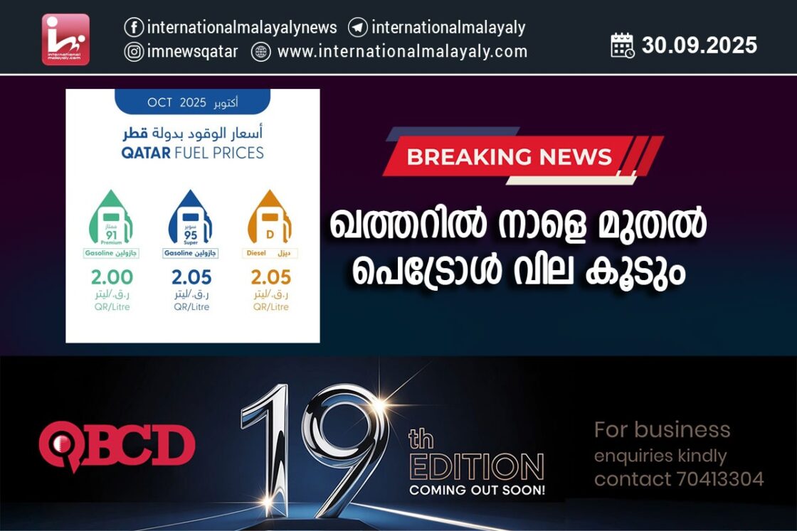 ഖത്തറില് നാളെ മുതല് പെട്രോള് വില കൂടും