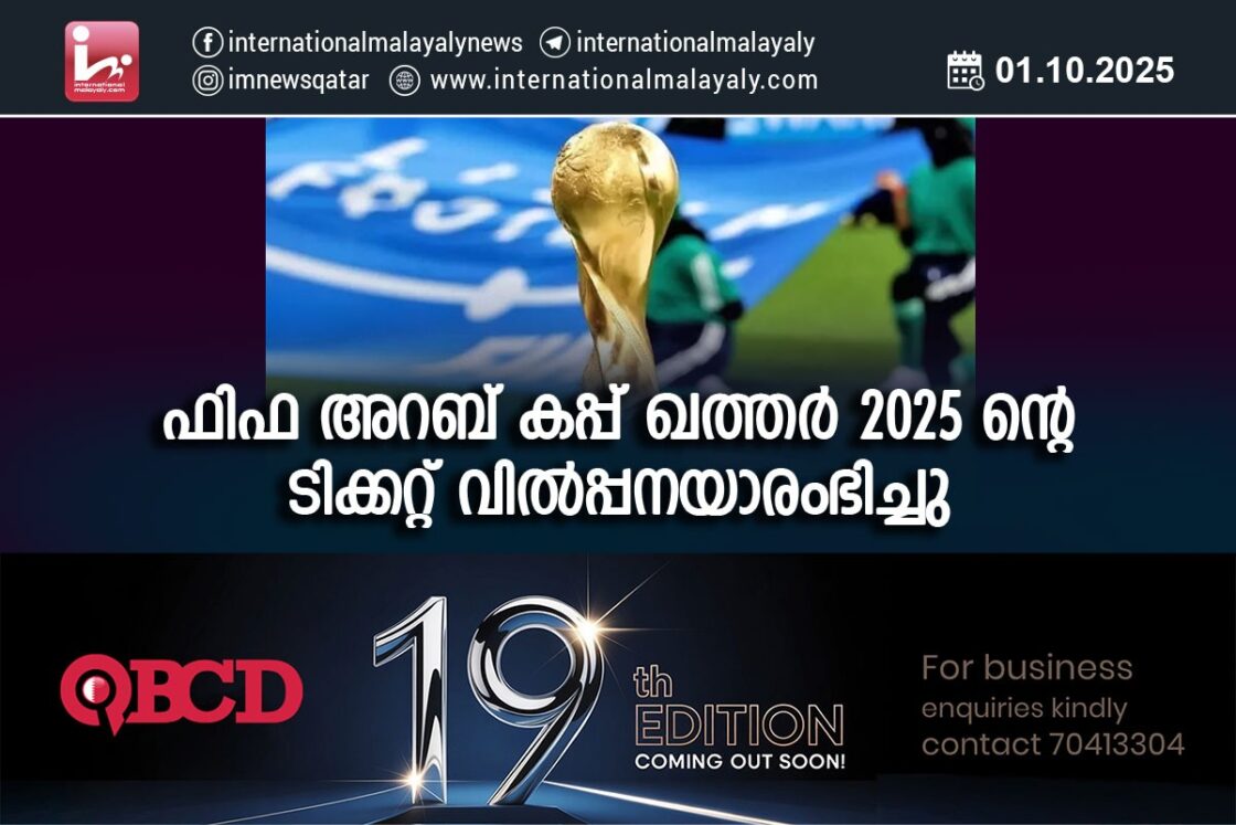 ദോഹ: ഡിസംബര് 1 മുതല് 18 വരെ നടക്കുന്ന ഫിഫ അറബ് കപ്പ് ഖത്തര് 2025 ന്റെ ടിക്കറ്റ് വില്പ്പനയാരംഭിച്ചു. ഇന്നലെ ദോഹ സമയം ഉച്ചകഴിഞ്ഞ് 3 മണിക്ക് www.roadtoqatar.qa എന്ന വെബ്സൈറ്റിലാണ് ടിക്കറ്റ് വില്പനയാരംഭിച്ചത്.