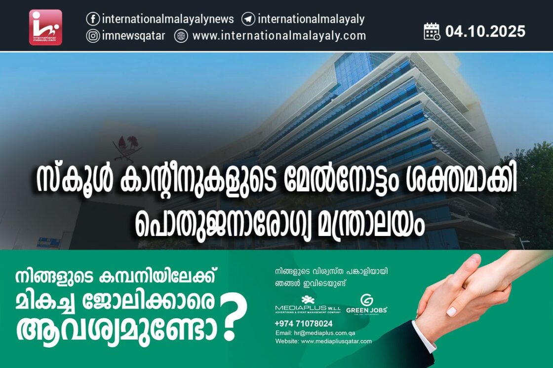 ദോഹ. ഉയര്ന്ന ഭക്ഷ്യ സുരക്ഷാ മാനദണ്ഡങ്ങള് ഉറപ്പാക്കുന്നതിനും വിദ്യാര്ത്ഥികളുടെ ആരോഗ്യം സംരക്ഷിക്കുന്നതിനുമായി പൊതുജനാരോഗ്യ മന്ത്രാലയം സ്കൂള് കാന്റീനുകളുടെ മേല്നോട്ടം ശക്തമാക്കി.