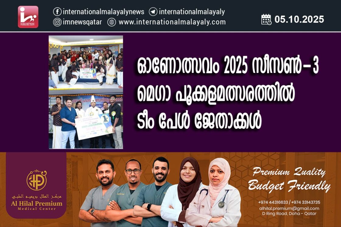 ഓണോത്സവം 2025 സീസണ്-3 മെഗാ പൂക്കളമത്സരത്തില് ടീം പേള് ജേതാക്കള്
