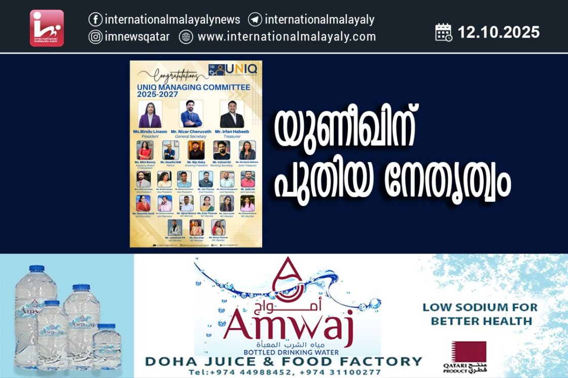 പ്രസിഡന്റ് ആയി ഹമദ് ഡെന്റല് സെന്ററില് നിന്നുള്ള ബിന്ദു ലിന്സനെയും ജനറല് സെക്രട്ടറിയായി ഖത്തര് റെഡ് ക്രെസെന്റില് നിന്നുള്ള നിസാര് ചെറുവത്തിനെയും ട്രഷറര് ആയി ഹമദ് ജനറല് ഹോസ്പിറ്റലിലെ ഇര്ഫാന് ഹബീബിനെയും, അഡൈ്വസറി ബോഡ് ചെയര്പേഴ്സണായി മുന് യുണീഖ് ഗവര്ണിങ് ബോഡി മെമ്പര് അല് അഹ്ലി ഹോസ്പിറ്റലിലെ മിനി ബെന്നിയെയും തിരഞ്ഞെടുത്തു.