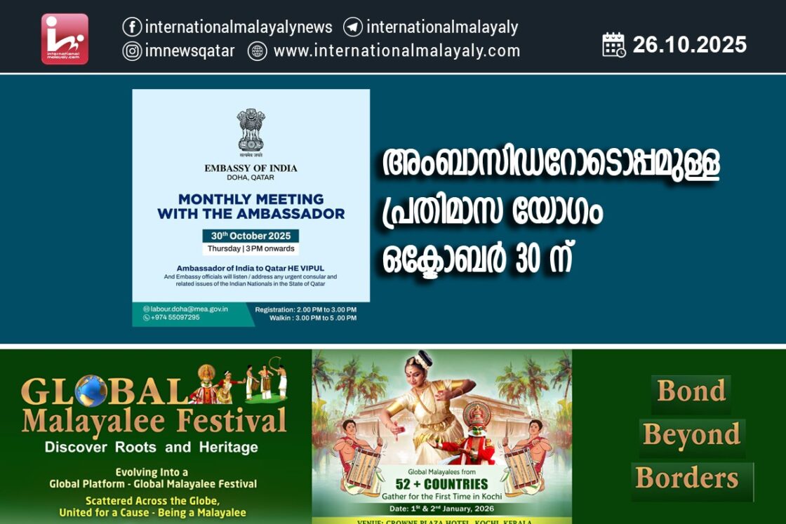 അംബാസിഡറോടൊപ്പമുള്ള പ്രതിമാസ യോഗം ഒക്ടോബര് 30 ന്