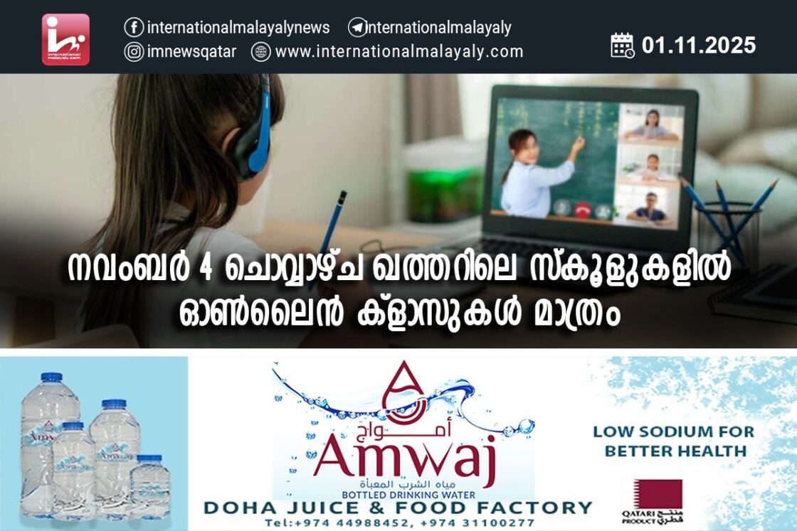 നവംബര് 4 ചൊവ്വാഴ്ച ഖത്തറിലെ സ്കൂളുകളില് ഓണ്ലൈന് ക്ളാസുകള് മാത്രം