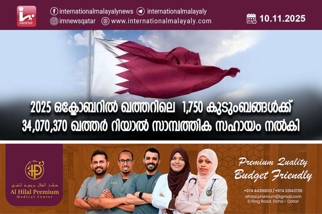 2025 ഒക്ടോബറില് ഖത്തറിലെ 1,750 കുടുംബങ്ങള്ക്ക് 34,070,370 ഖത്തര് റിയാല് സാമ്പത്തിക സഹായം നല്കി