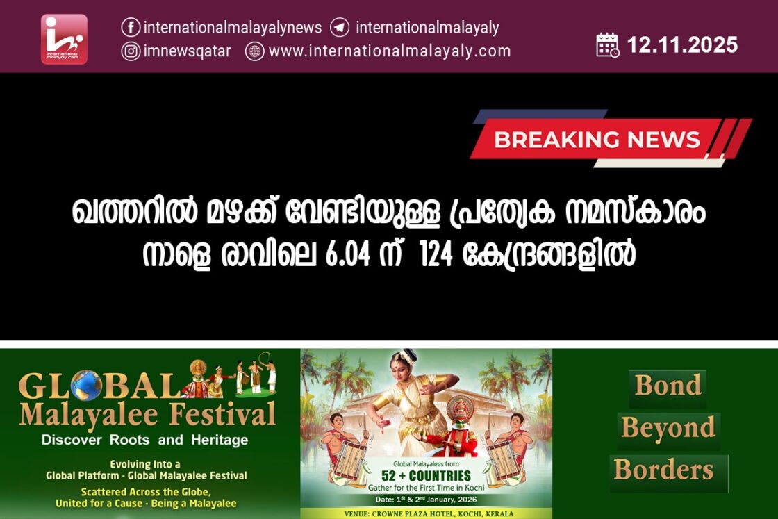 ഖത്തറില് മഴക്ക് വേണ്ടിയുള്ള പ്രത്യേക നമസ്കാരം നാളെ രാവിലെ 6.04 ന് 124 കേന്ദ്രങ്ങളില്