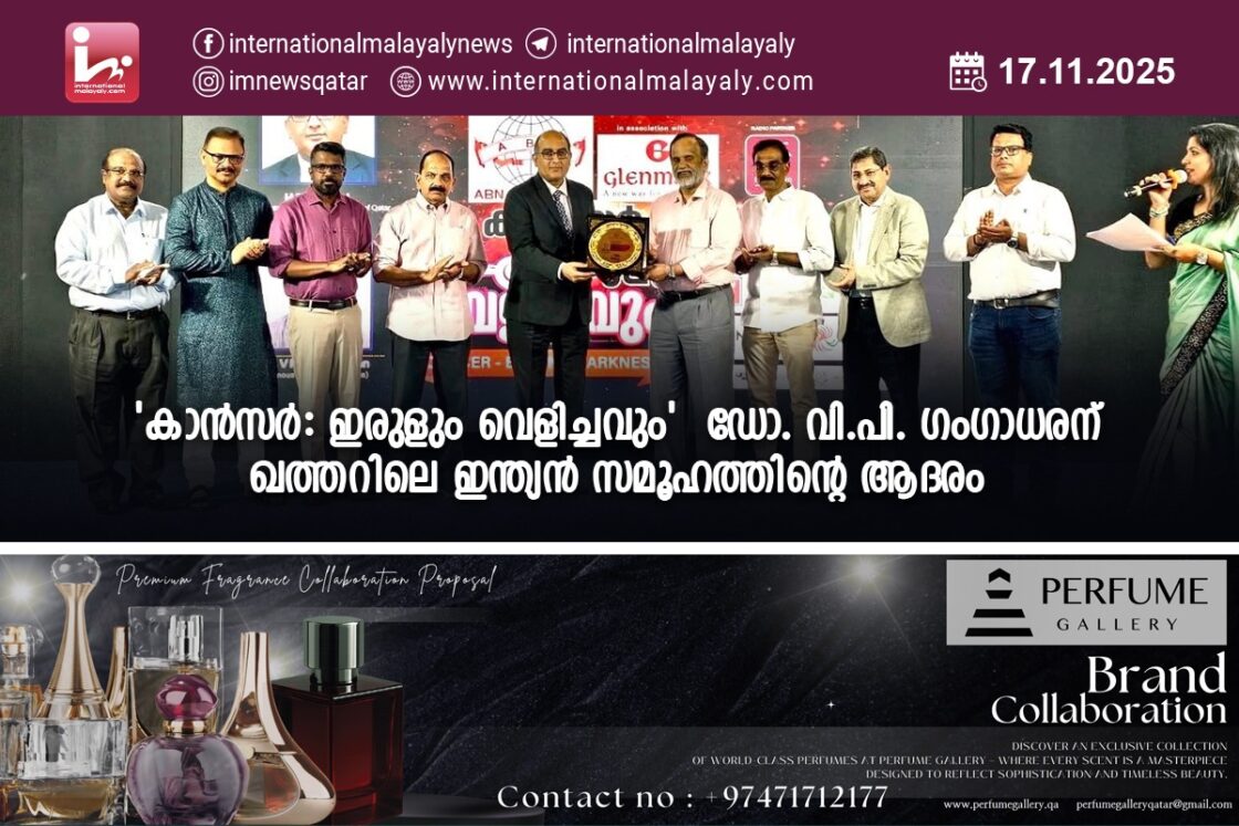 ‘കാന്സര് : ഇരുളും വെളിച്ചവും’ ഡോ. വി.പി. ഗംഗാധരന് ഖത്തറിലെ ഇന്ത്യന് സമൂഹത്തിന്റെ ആദരം