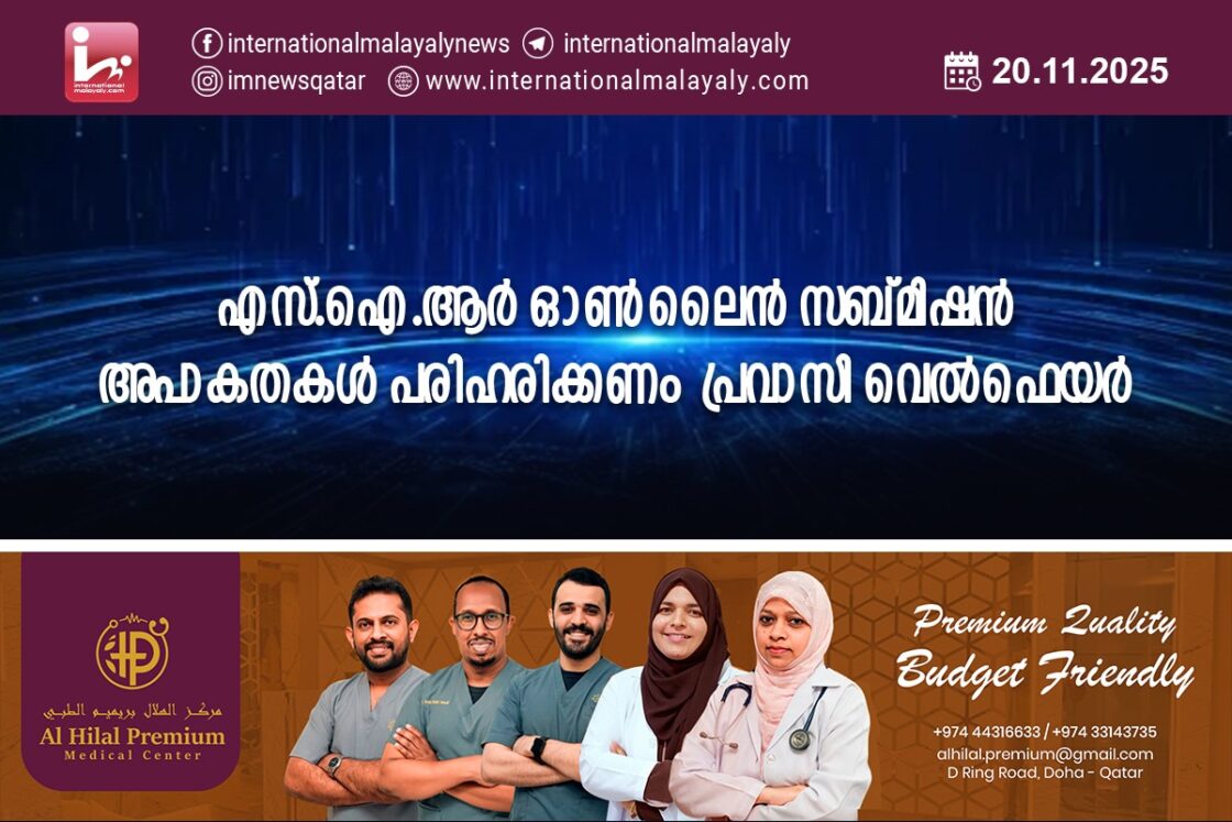 എസ്.ഐ.ആര് ഓണ്ലൈന് സബ്മിഷന് അപാകതകള് പരിഹരിക്കണം – പ്രവാസി വെല്ഫെയര്