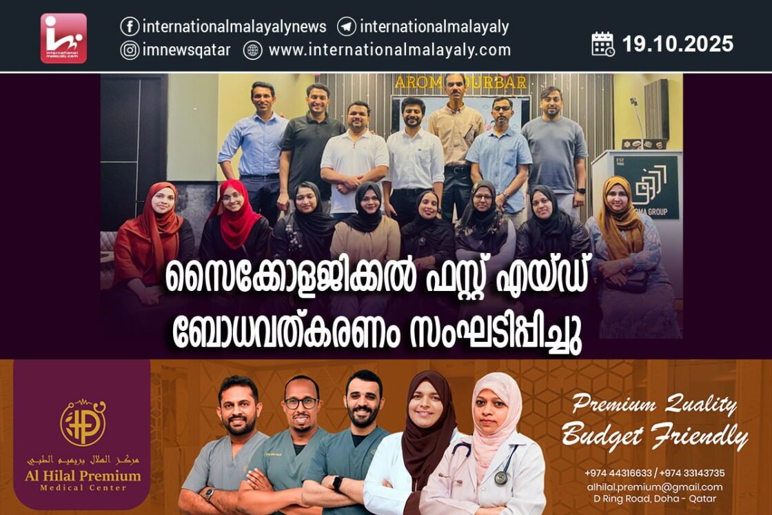 ദോഹ. ലോക മാനസിക ദിനാഘോഷത്തിന്റെ ഭാഗമായി സൈക്കോളജിക്കല് ഫസ്റ്റ് എയ്ഡ് ക്ലാസ്സ് സംഘടിപ്പിച്ചു.