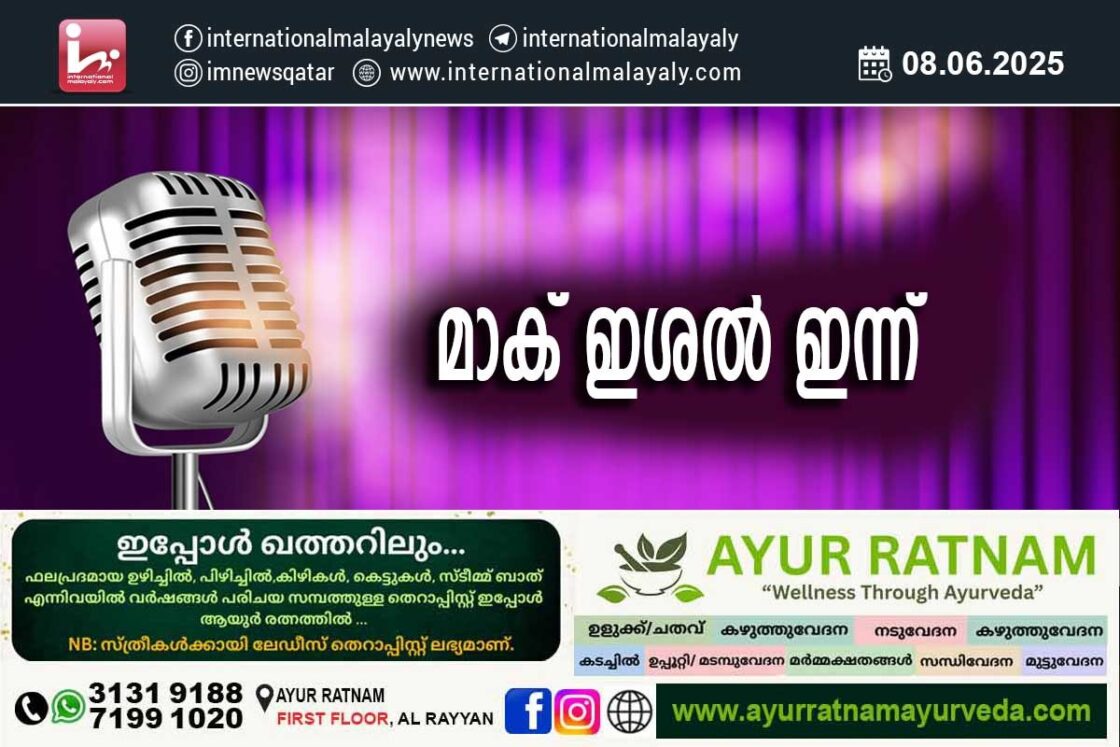 ദോഹ. മലയാളി അസോസിയേഷന് കോഴിക്കോട് ബലി പെരുന്നാള് ആഘോഷങ്ങളുടെ ഭാഗമായി സംഘടിപ്പിക്കുന്ന മാക് ഇശല് മൂന്നാം ഈദ് ദിനമായ ഞായറാഴ്ച്ച ജൂണ് 8 വൈകുന്നേരം 7:00 മണിക്ക് ഐസിസി അശോക ഹാളില് നടക്കും. സംഗീതം, നൃത്തം, സ്നേഹവും സൗഹൃദവുമെല്ലാം ഒരുമിക്കുന്ന മനോഹരമായ ഒരു സാംസ്കാരിക സന്ധ്യയിലേക്ക് പ്രവേശനം സൗജന്യമാണ് .