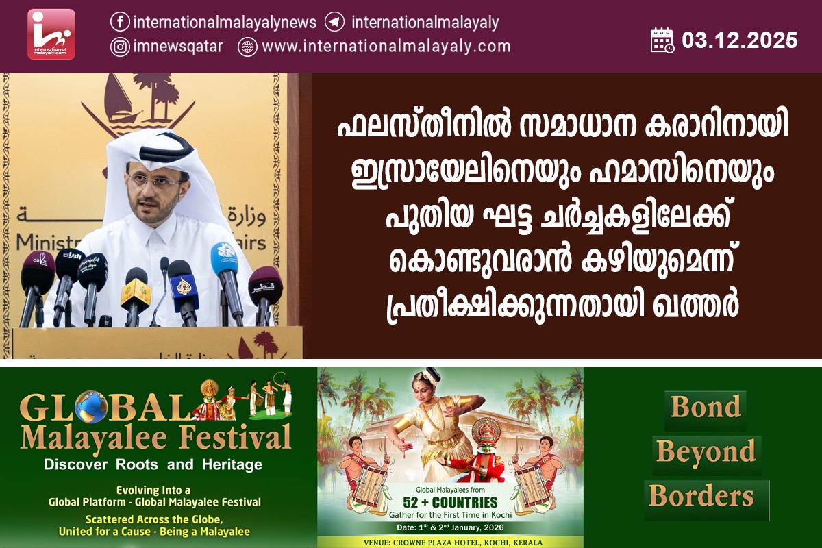 ഫലസ്തീനില് സമാധാന കരാറിനായി ഇസ്രായേലിനെയും ഹമാസിനെയും പുതിയ ഘട്ട ചര്ച്ചകളിലേക്ക് കൊണ്ടുവരാന് കഴിയുമെന്ന് പ്രതീക്ഷിക്കുന്നതായി ഖത്തര്