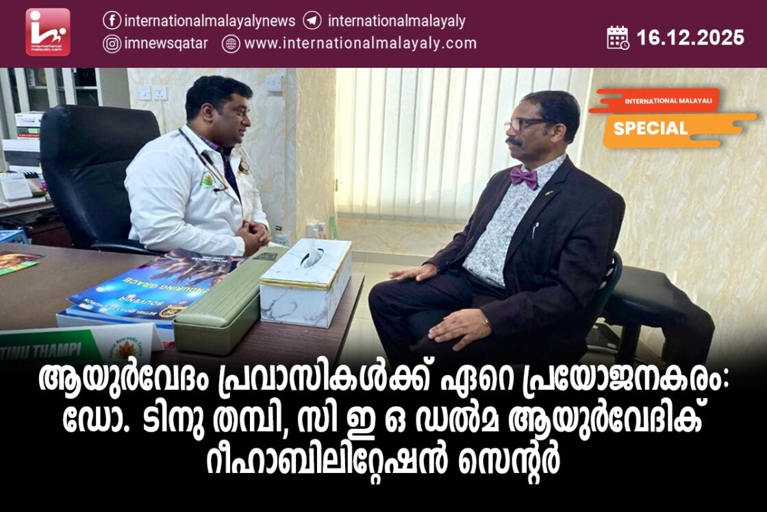 ‘ആയുര്വേദം പ്രവാസികള്ക്ക് ഏറെ പ്രയോജനകരം’ : ഡോ. ടിനു തമ്പി, സിഇഒ ഡല്മ ആയുര്വേദിക് റീഹാബിലിറ്റേഷന് സെന്റര്