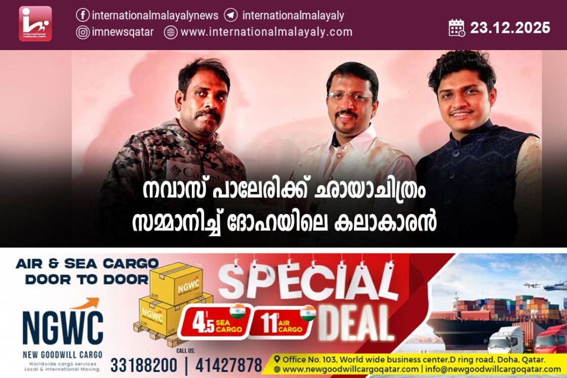 നവാസ് പാലേരിക്ക് ഛായാചിത്രം സമ്മാനിച്ച് ദോഹയിലെ കലാകാരന്
