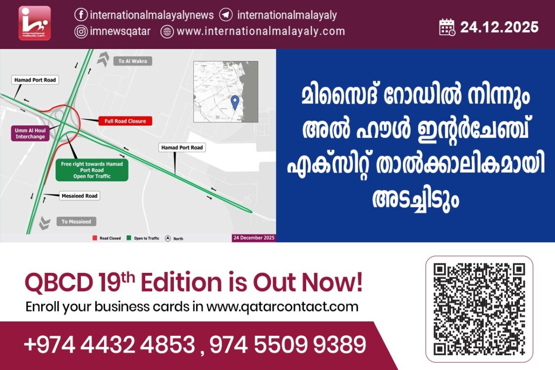 മിസൈദ് റോഡില് നിന്നും അല് ഹൗള് ഇന്റര്ചേഞ്ച് എക്സിറ്റ് താല്ക്കാലികമായി അടച്ചിടും