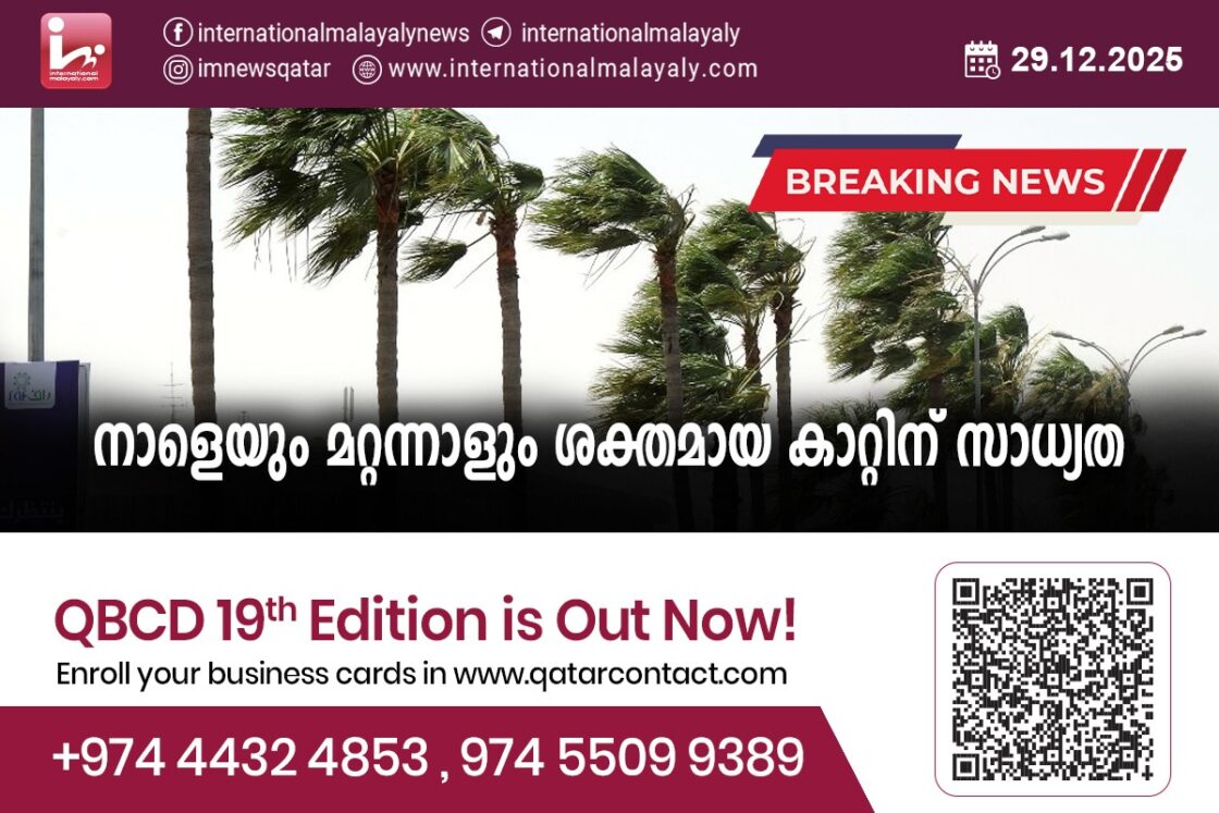 ദോഹ. ഖത്തറില് നാളെയും മറ്റന്നാളും ശക്തമായ കാറ്റിന് സാധ്യതയെന്ന് കാലാവസ്ഥ വകുപ്പ്. വടക്കുപടിഞ്ഞാറന് കാറ്റ് മൂലമുണ്ടാകുന്ന ഈ കാലാവസ്ഥ, താപനിലയില് കുറവുണ്ടാക്കുകയും തണുപ്പ് വര്ദ്ധിക്കുകയും ചെയ്യാം.