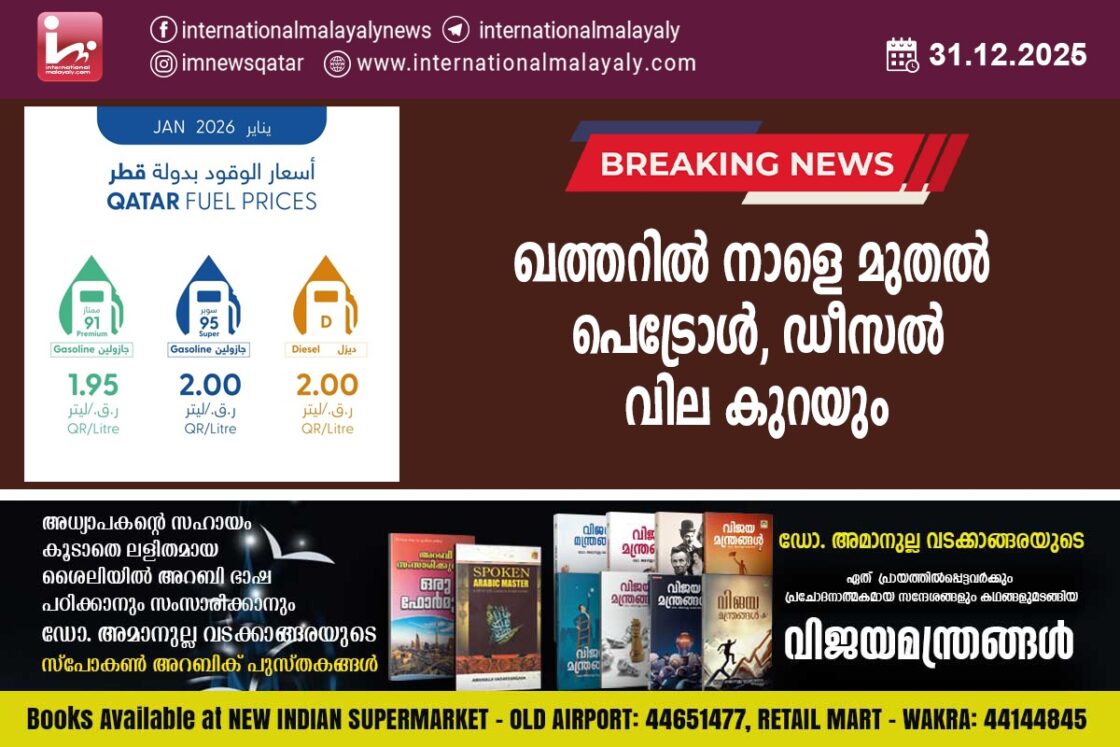 ഖത്തറില് നാളെ മുതല് പെട്രോള്, ഡീസല് വില കുറയും