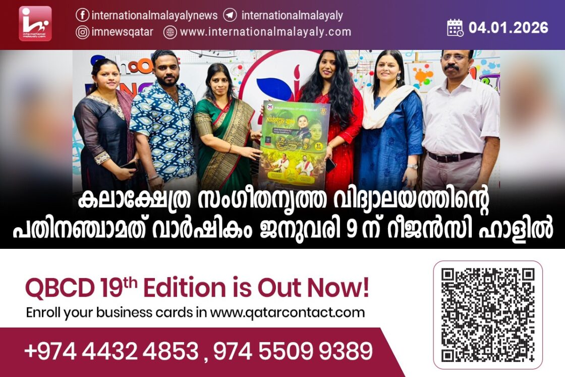 ദോഹ. കലാക്ഷേത്ര സംഗീത-നൃത്ത വിദ്യാലയത്തിന്റെ പതിനഞ്ചാമത് വാര്ഷികം ജനുവരി 9 ന് റീജന്സി ഹാളില്