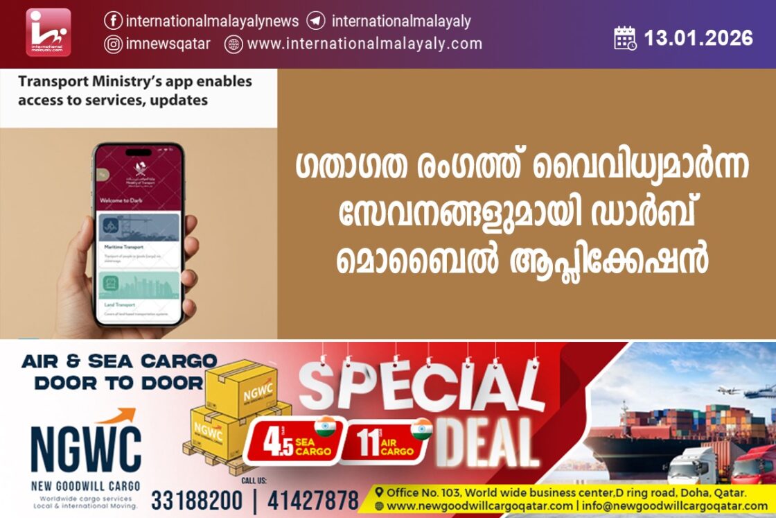 ദോഹ: രാജ്യത്തുടനീളമുള്ള ഗതാഗത സംബന്ധിയായ വിവിധ സേവനങ്ങള് ആക്സസ് ചെയ്യാനും കൈകാര്യം ചെയ്യാനും ഉപയോക്താക്കളെ അനുവദിക്കുന്ന ഏകീകൃത ഡിജിറ്റല് പ്ലാറ്റ്ഫോമായ ഡാര്ബ് മൊബൈല് ആപ്ലിക്കേഷന് പൊതുജനങ്ങള് ഉപയോഗിക്കണമെന്ന് ഗതാഗത മന്ത്രാലയം ആഹ്വാനം ചെയ്തു.