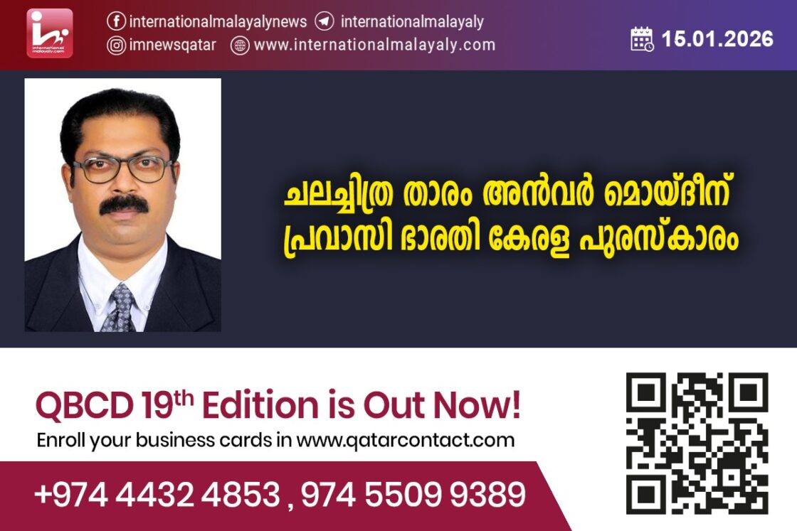 ചലച്ചിത്ര താരം അന്വര് മൊയ്ദീന് പ്രവാസി ഭാരതി കേരള പുരസ്കാരം