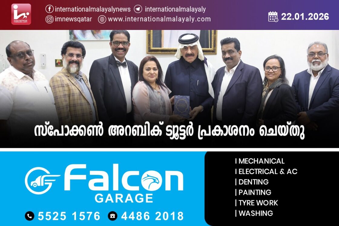 ദോഹ. പ്രവാസ ലോകത്തെ മുതിര്ന്ന മാധ്യമ പ്രവര്ത്തകനും ഗ്രന്ഥകാരനുമായ ഡോ. അമാനുല്ല വടക്കാങ്ങരയുടെ സ്പോക്കണ് അറബിക് ട്യൂട്ടര് പ്രമുഖ ഖത്തരി സംരംഭകനും അല് റഈസ് ഗ്രൂപ്പ് ചെയര്മാനുമായ അഹ് മദ് അല് റഈസ് പ്രകാശനം ചെയ്തു.