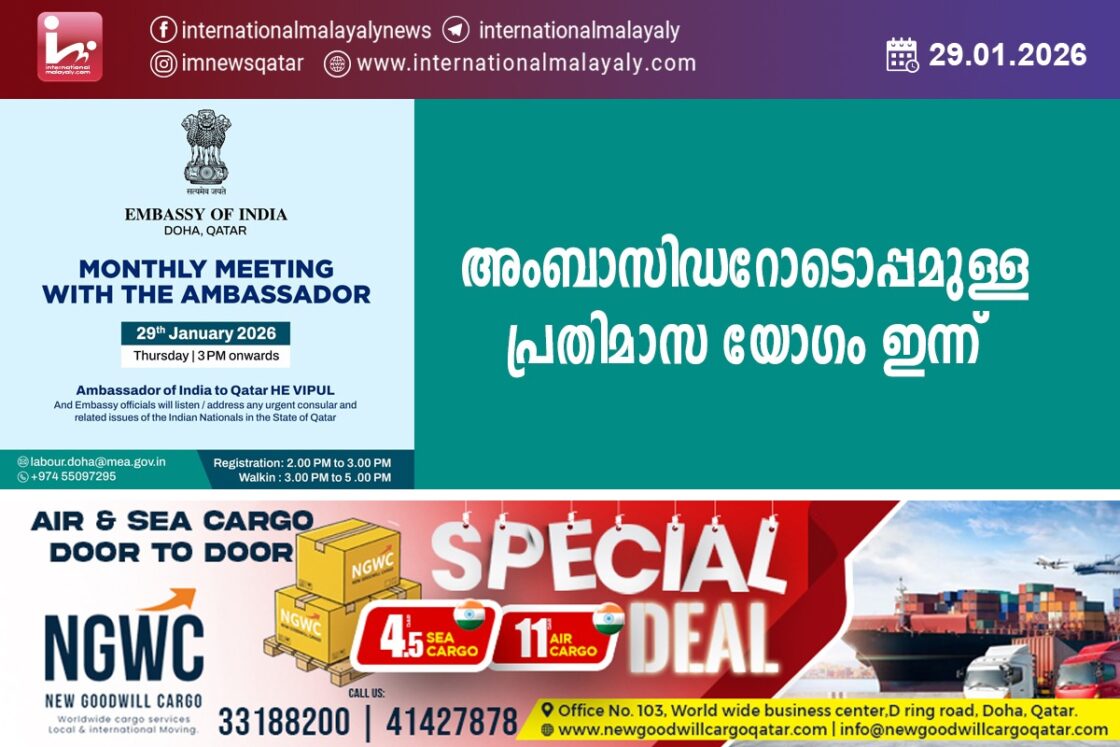 അംബാസിഡറോടൊപ്പമുള്ള പ്രതിമാസ യോഗം ഇന്ന്